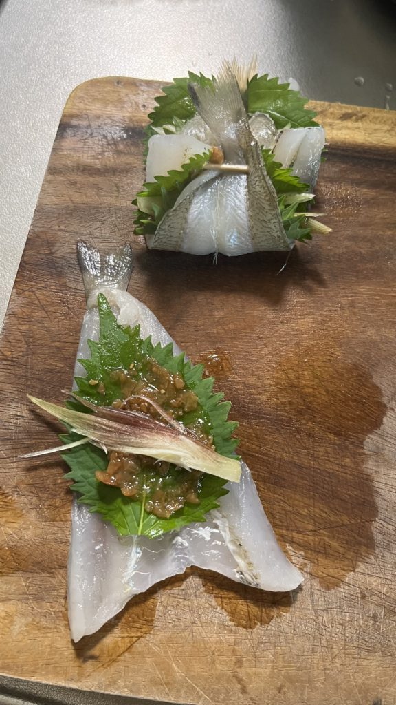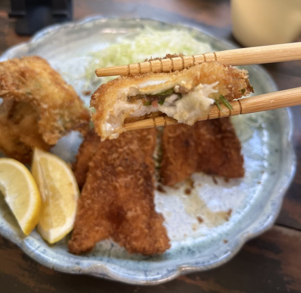 「梅紫蘇ミョウガ巻きキスフライ」