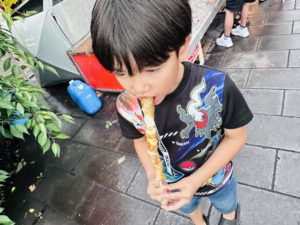 息子が選んだのは――長〜〜いチーズ巻きスティック!