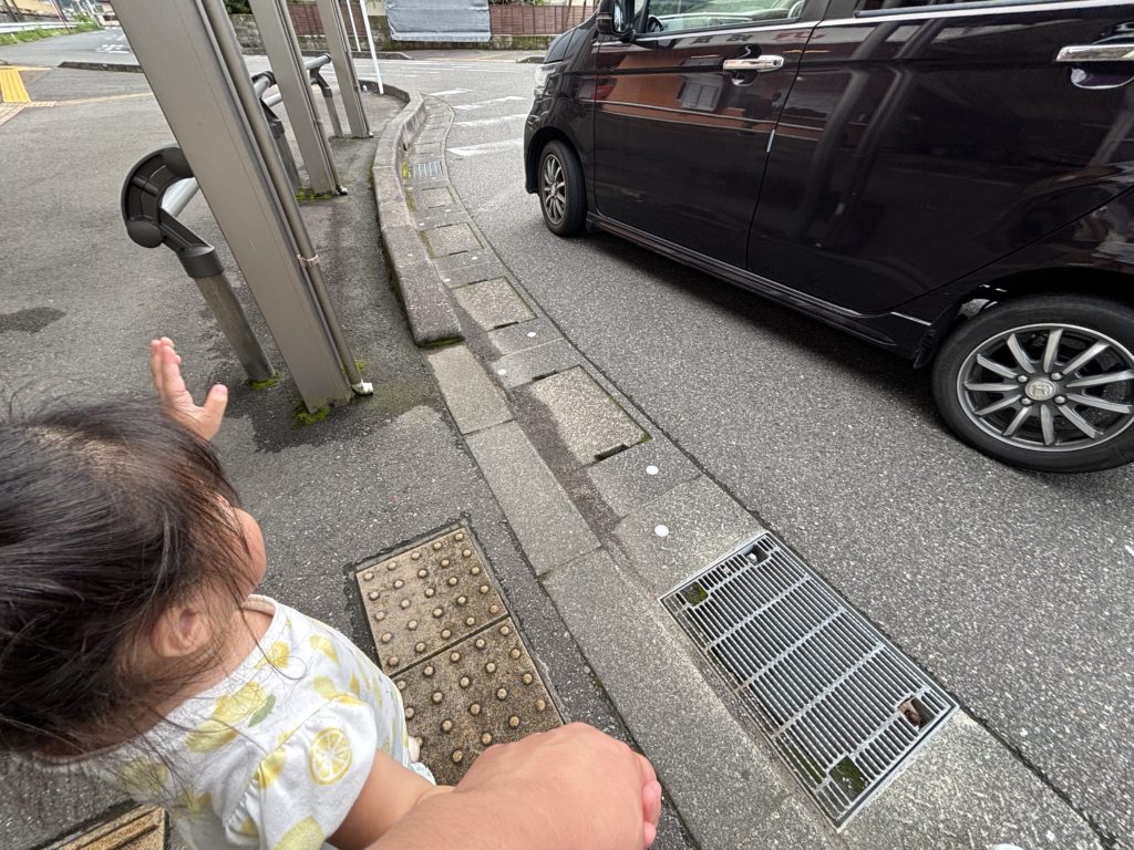 しかしムスメちゃんと一緒に歩くと、道にはミミズ、途中に公園、そしてケーキ屋さん。