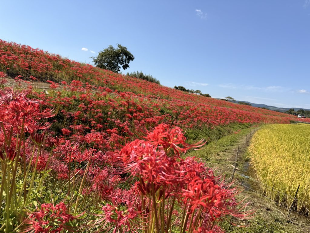 絶賛見頃のタイミングが合い、田んぼ🌾と青い空☁️とがまるで絵になるなぁと思いながら真っ赤な絨毯を見てきました!☀️