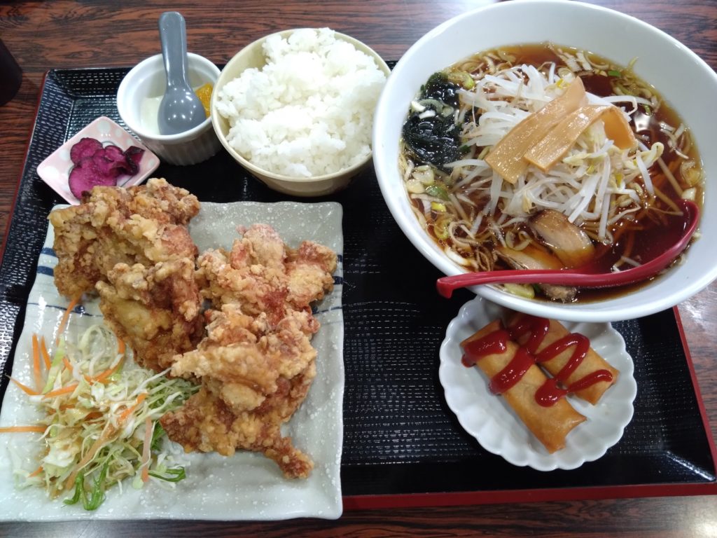 私は鶏の唐揚げ定食を注文しました!