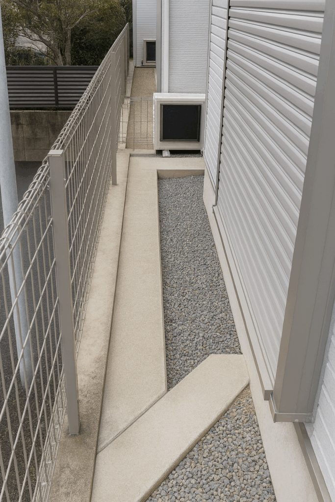 「外壁と敷地境界の間にある細長い通路」