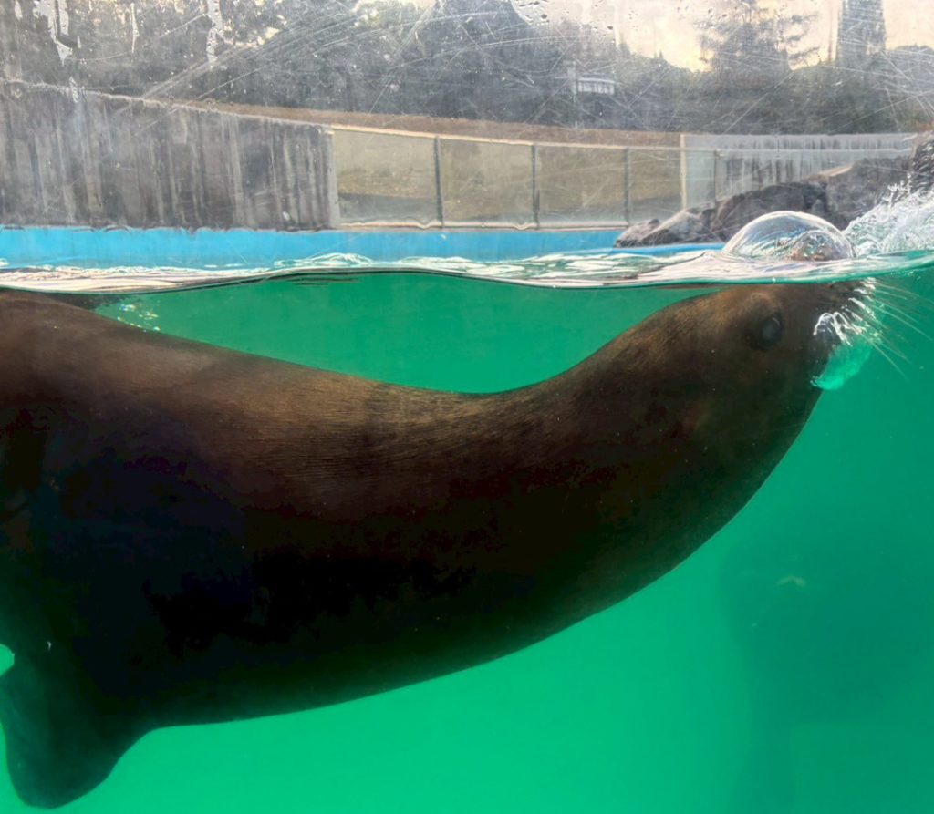 1人遊びしていたアシカに、水をかけられちゃいました(笑)