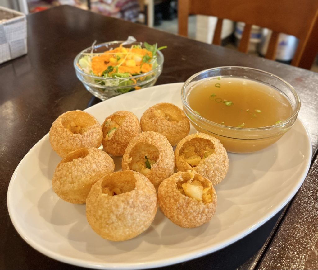 パニプリという、丸い生地にスパイスの効いた水を入れるインドのストリートフードも、新感覚でおすすめです。