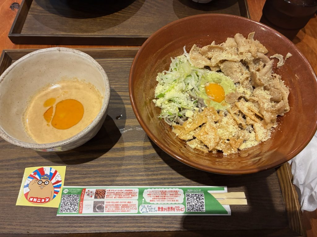 美味しそうでしょ?当店おすすめ「旨辛にくそば(うどん)」同じ値段で、うどん、そばが両方選べるし、両方食べたいなぁー思いますよね?
