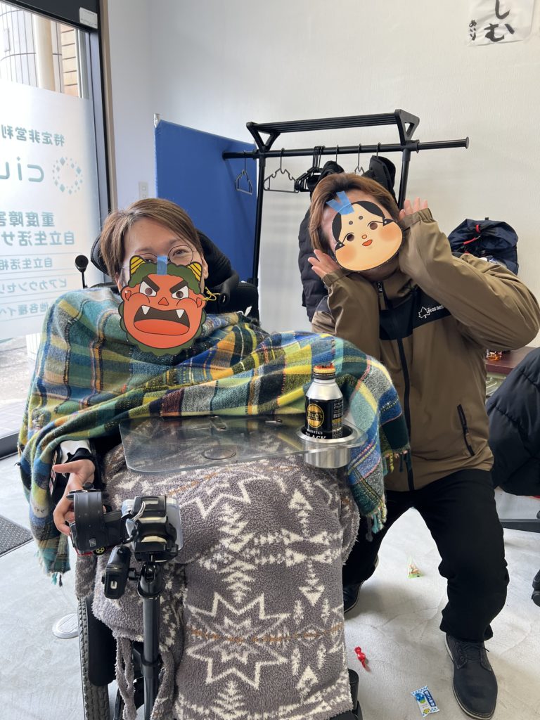 久しぶりに自分も豆を投げました。いつも投げられる役なので、楓斗君がいたので助かりました😄