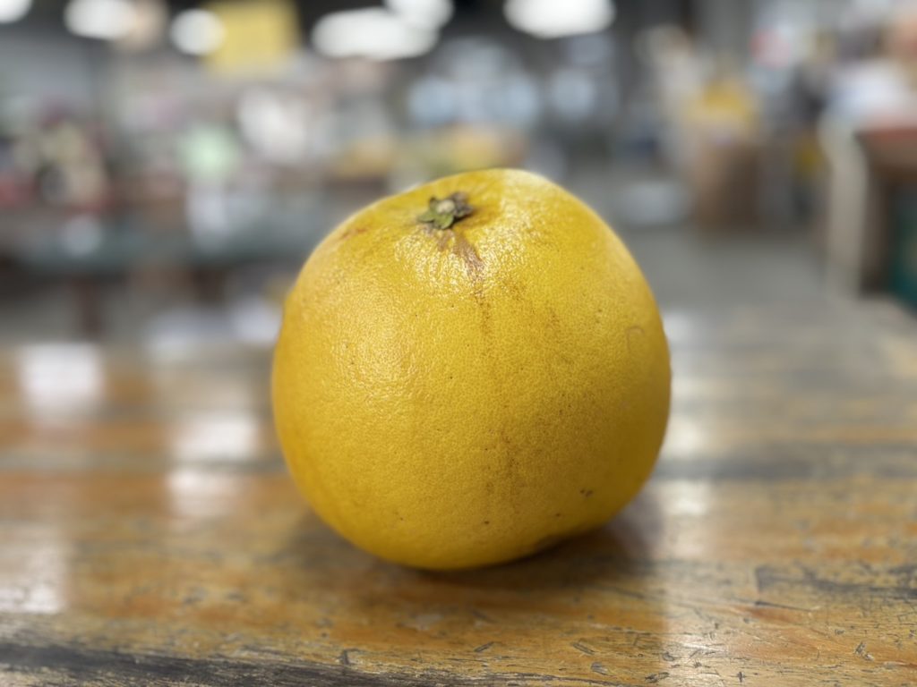 そしてそして、大盛りの蕎麦を食べ終えて外に出ると柑橘トラベラーの心をくすぐる「晩白柚」が。