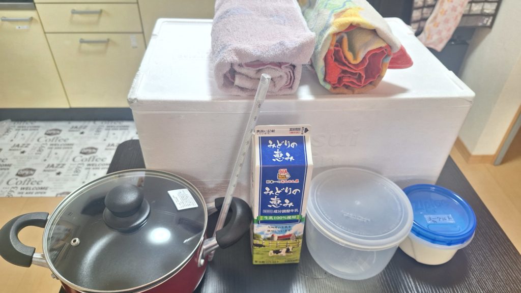 種類はヨーグルトはなんでもOkですが、牛乳は無調整でお願いします。